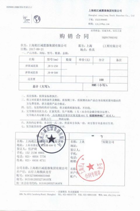 The official website of Shanghai Songjiang shock absorber Group Co., Ltd. introduces to you: [Weifang Henglian Special Paper Co., Ltd.] contract information of Weifang Henglian Special Paper Co., Ltd. We provide spring shock absorber/ Flanged rubber bellows for more paper machines in other paper mills.